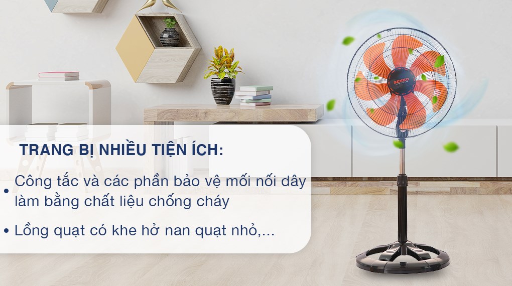 - Lồng quạt có khe hở nan quạt nhỏ, đảm bảo an toàn cho người dùng khi tiếp xúc gần với quạt.
